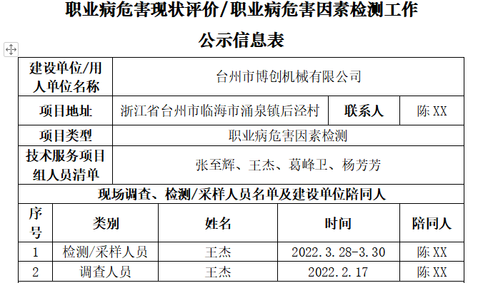 浙江鑫泰检测技术有限公司关于职业卫生的报告公示查询